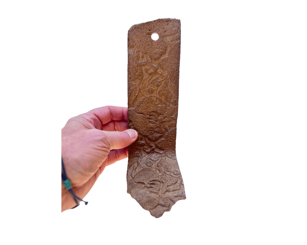 A unique and attractive orchid mount to show-off your orchid collection or epiphytic plant. These mounts make a great addition to how you display your orchids. Made of stoneware ceramic which will last indefinitely verses organic mounts that eventually degrades over time. This orchid mount is "L" shape, brown in color , unglazed and has a orchid design embossed/stamped on the face side. Dimensions - 9-3/4" length ( straight length) , 2-7/8" width. Clay thickness 1/4". Dimensions are approximate and in inches.