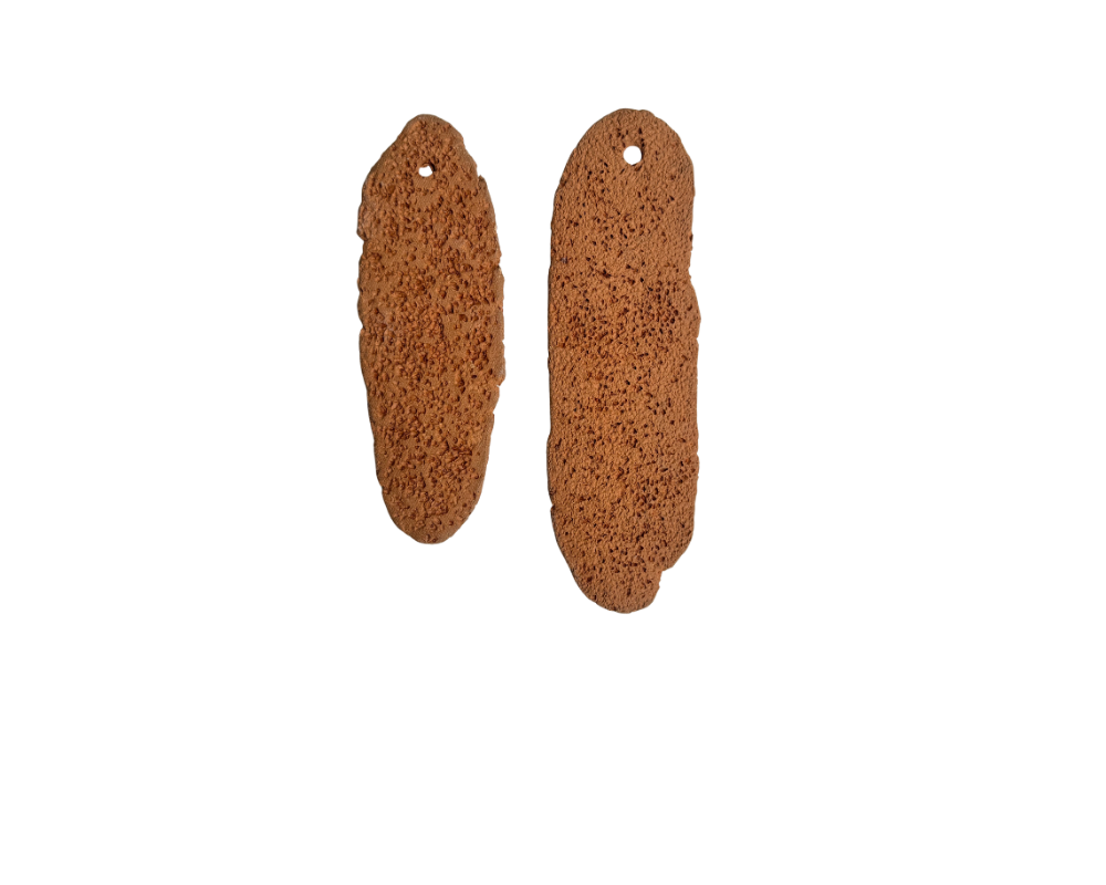 A unique and attractive orchid mount to show-off your orchid collection or epiphytic plant. These mounts make a great addition to how you display your orchids. Made of stoneware ceramics which will last indefinitely verses organic mounts, such as wood and cork, that eventually rots or degrades over time. Orchid mounts are terra cotta in color, unglazed with a rough textured surface to give roots an anchoring point to adhere to. Sold as a set of two pieces. Approximate dimensions are 1ea = 10"X3" and 1ea = 8-1/2"X3" . Approximate thickness of clay is 3/16" . Dimensions are in inches.