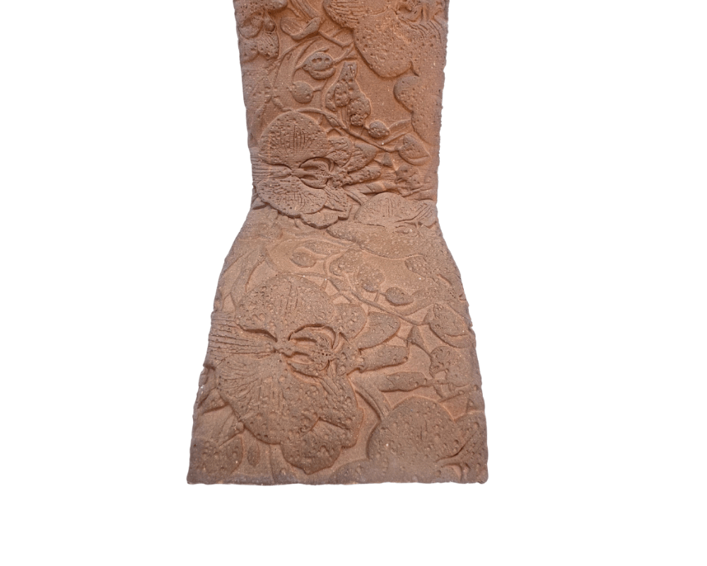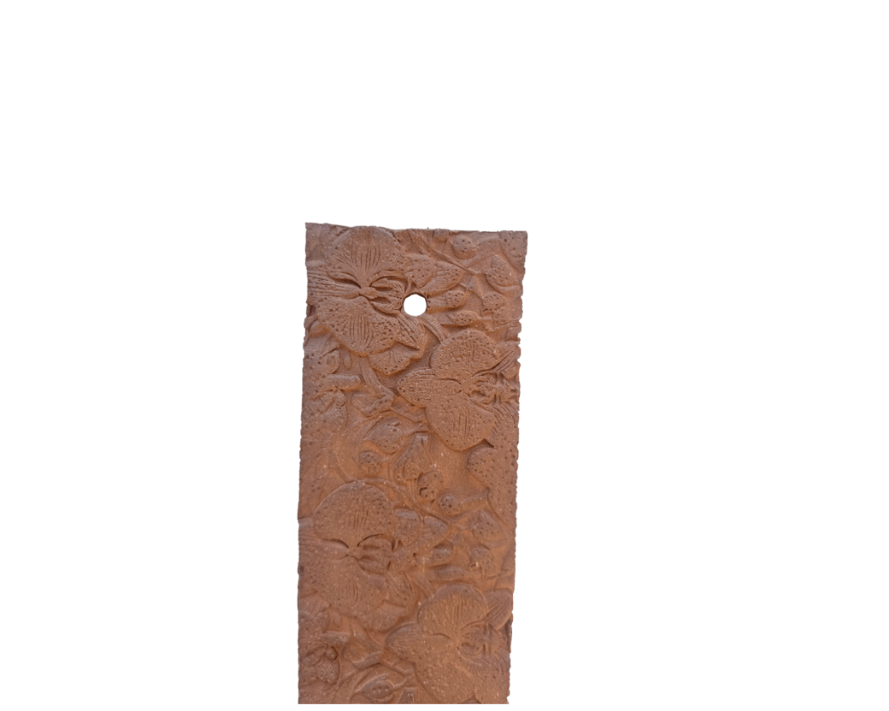 Made of stoneware ceramic which will last indefinitely verses organic mounts that eventually rots or degrades over time such as wood and cork. This orchid mount is "L" shape in design, brown in color , unglazed and has a rough textured surface on the face side. Face side has an embossed/stamped orchid design. Straight length is approximately 13", depth 5" , and width 3-3/4". Clay thickness is approximately 1/4" to 5/16".