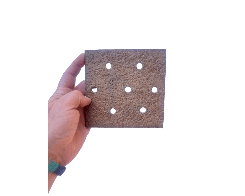 A unique and attractive orchid mount to show-off your orchid collection or epiphytic plant. These mounts makes a great addition to how you display your orchids. Made of stoneware ceramic which will last indefinitely verses organic mounts that eventually degrades over time such as wood and cork. This orchid mount is flat, square shape, brown in color , unglazed and has a rough textured surface on the face side. Dimensions are 5-3/4"x5-3/4". Thickness of clay is approximately 3/16" to1/4". Dimensions are in inches.