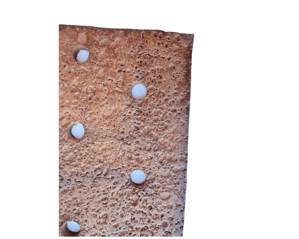 Handmade from rolled stoneware clay slabs and various hand tools. Once dried, piece is then fired to cone 6 in a ceramic kiln. The whole process takes several days. Although I repeat many of my designs, each piece is individually made by hand, unique and no two pieces are exactly the same. Many of my designs are intended to be rough hewn in appearance with imperfections such as divots, rough and random shaped edges.