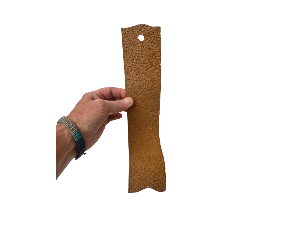 A unique and attractive orchid mount to show-off your orchid collection or epiphytic plant. These mounts make a great addition to how you display your orchids. Made of stoneware ceramic which will last indefinitely verses organic mounts that eventually degrades over time. This orchid mount is "L" shape in design, brown in color , unglazed and has a rough, elephant skin type textured surface on the face side. Dimensions - 11-1/2" in length (straight length) , by 2-3/4" in width, by 3-1/2" in depth. Thickness of clay is 1/4". Dimensions are approximate and are in inches.