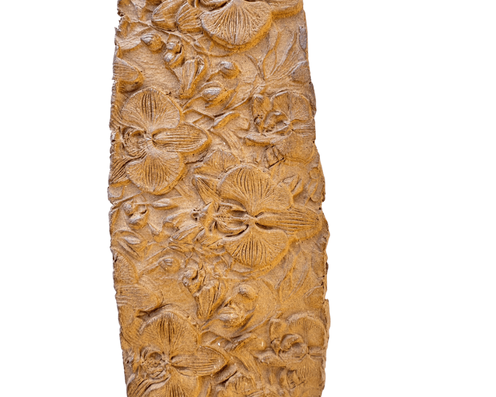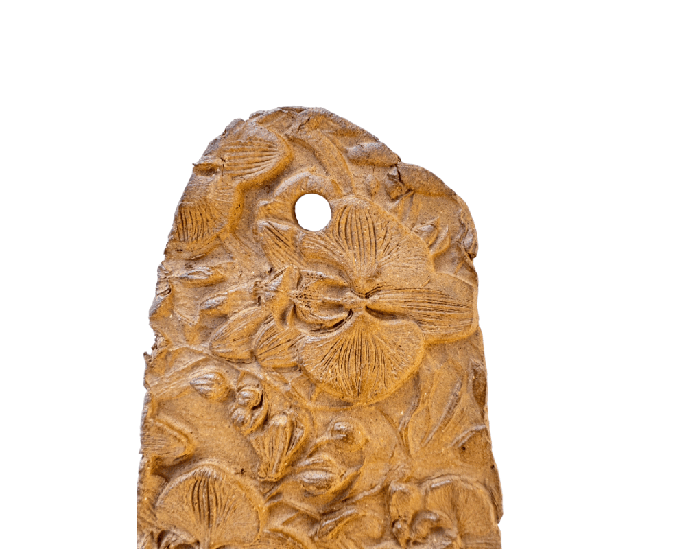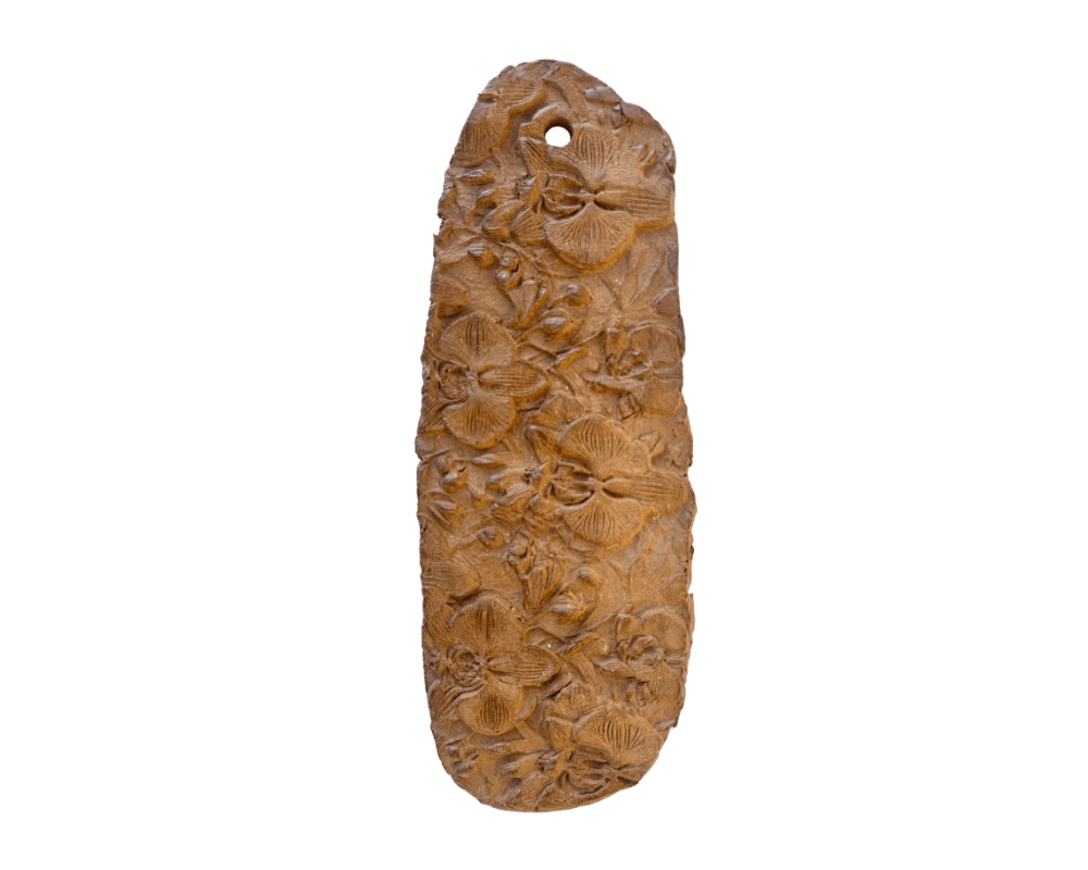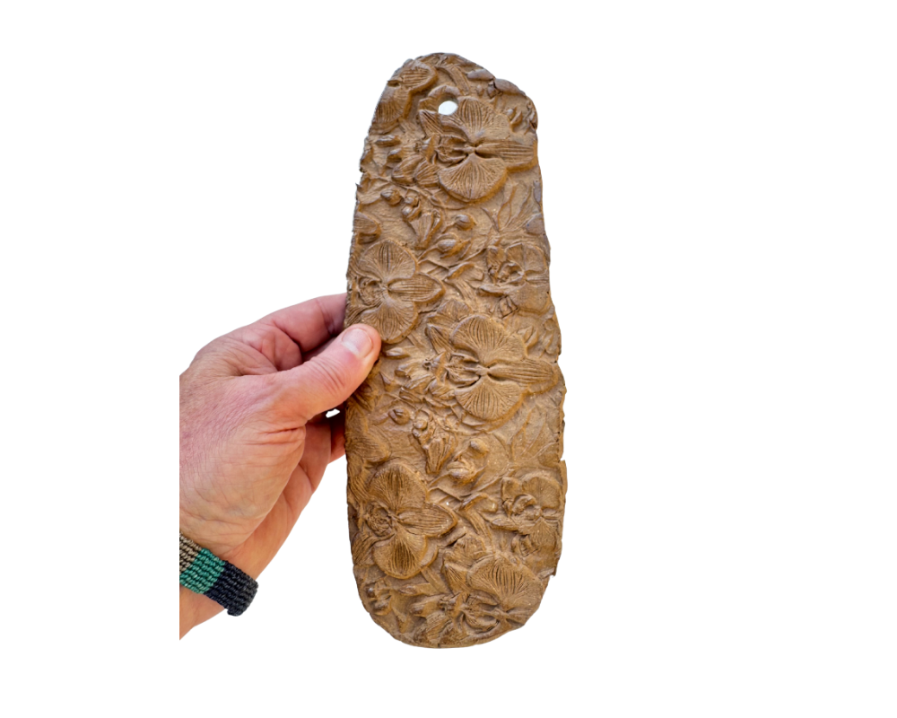 A unique and attractive orchid mount to show-off your orchid collection or epiphytic plant. These mounts make a great addition to how you display your orchids. Made of stoneware ceramic which will last indefinitely verses organic mounts that eventually degrades over time. This orchid mount is flat, brown in color , unglazed and has an embossed orchid pattern on the face side. Dimensions are approximately 11-1/4" in length, 4-1/8" width (widest point) .Clay thickness is approximately 1/4". Dimensions are in inches.