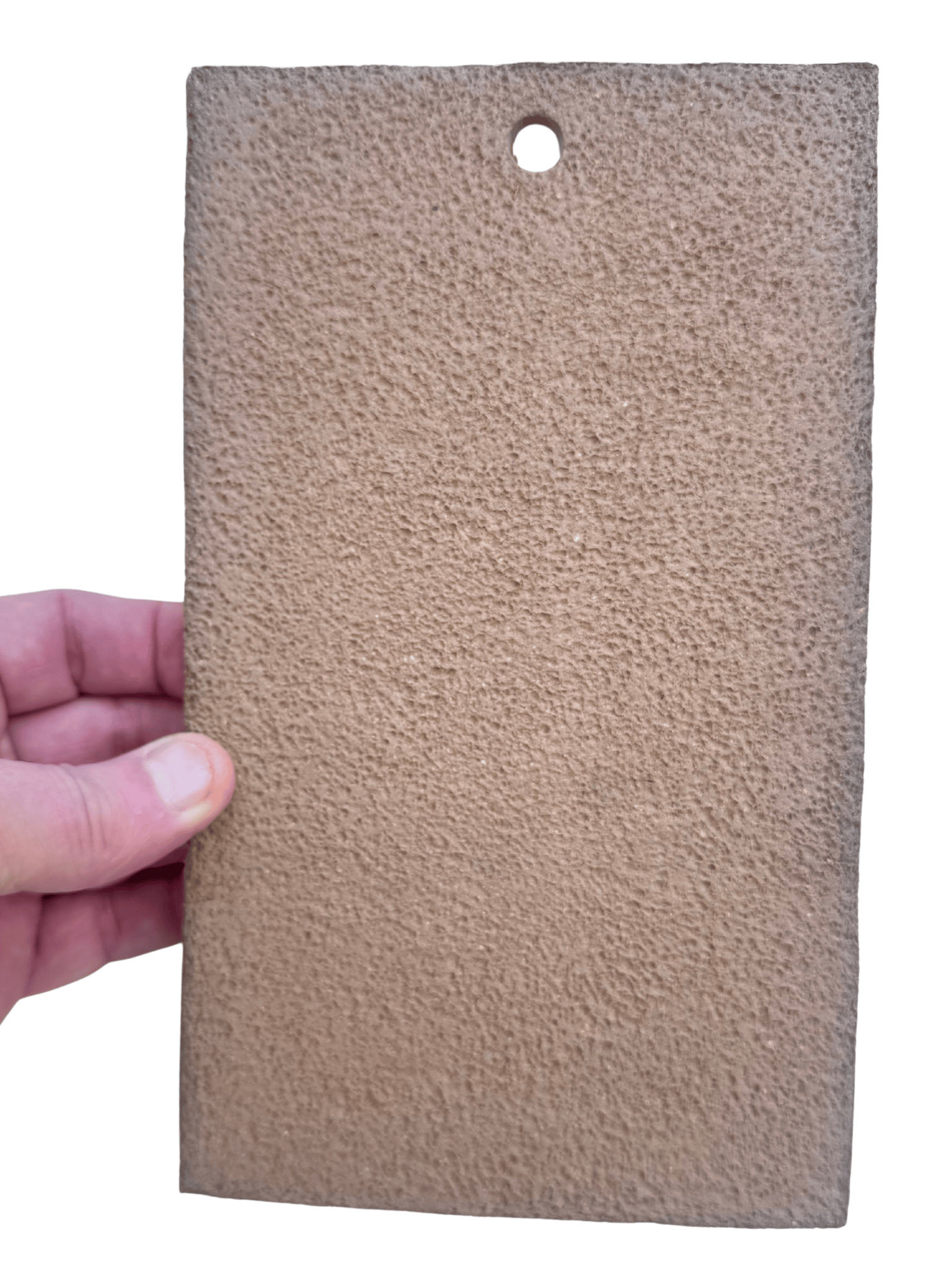 A unique and attractive orchid mount to show case your orchid collection or epiphytic plant. These mounts make a great addition to how you display your orchids. A " Show-Off " mount. Handmade from stoneware clay which will last indefinitely verses organic mounts, such as wood or cork, which eventually degrades over time. This orchid mount is flat, rectangle shape, brown in color , unglazed and has a rough texture surface on the face side. The rough texture gives roots a good surface to cling to.
